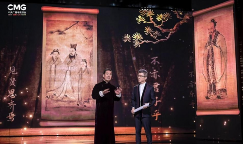 图片说明:央视著名主持人朱广权身着“PYE 派 X 国家宝藏”联名款白衬衫参加《国家宝藏》第三季节目录制。