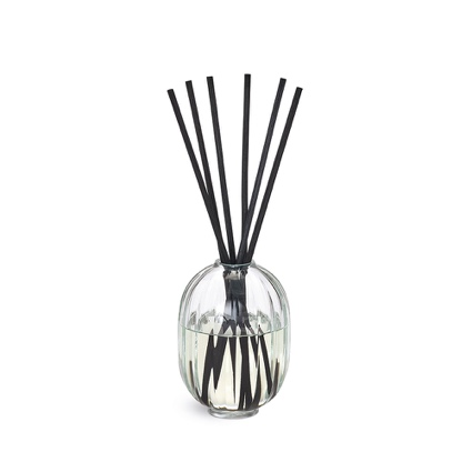 这一理念更淋漓展现于该系列的核心作品之中: 拥有经典设计之美的室内扩香摆件。将扩香棒置入多面棱玻璃瓶内的香氛液体中,棱镜交融反射,营造光影变幻间的趣致时光。全新室内扩香摆件可不断补充循环使用,更可长时间驾驭较大空间,扩香棒在一呼一吸之间汲取并逐渐扩散香气,可选香型涵盖品牌经典的Baies(浆果香)、Roses(玫瑰)及Tubéreuse(晚香玉)。作为diptyque扩香家族的新成员,这一作品扩充了现有扩香系列的选择,也呼应了品牌所强调的愿景——每款香氛都能各尽其用,装点不同瞬间。