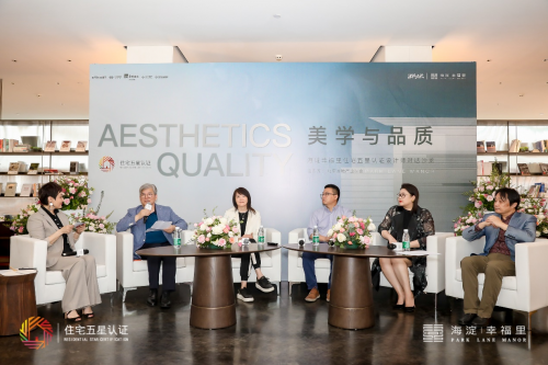本次活动邀请到北京房地产业协会副会长、秘书长陈志,中国建筑北京设计研究院原副院长、总建筑师董少宇,中国房地产协会健康建筑专家涂铮、Designwire设计腕儿创始人、资深媒体人马海金以及华润置地北京公司设计总监宋涛,围绕百年建筑设计理念,结合海淀学术人文精神,从五个测评维度探讨对“美学与品质”的深刻理解。