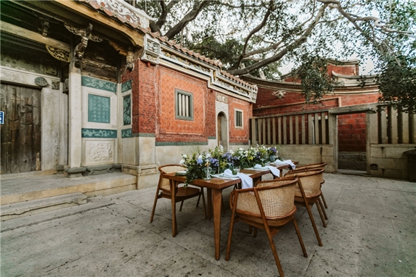 看古厝,也要住古厝。青普文化行馆·晋江梧林由 12 栋建筑构成。其中,漆厝、文甫厝、德兜宅、钳龙厝、再取旧厝、怀和旧厝都为历史逾百年的闽南传统红砖大厝(厝,即“房屋”之意)。建筑内部,优雅明丽的燕尾脊、四水归堂的合院、饱含民居智慧的明堂暗室也均被保留下来。合院是中式民居的主轴和核心,民居中晴雨两宜,四时皆景。在院中喝茶听雨,静观四时,悠然自得。