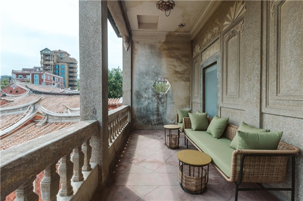 12 栋建筑中,容膝居、万安松涛是两栋沿用过去名字的洋楼。相较古厝,洋楼的色彩更丰富,而且将圆润的造型和藤编元素混搭,显得南洋风情十足。洋楼二层的客房皆带有露台,闲时可坐在此处小憩,喝一杯南洋咖啡,或品一口闽南茶。