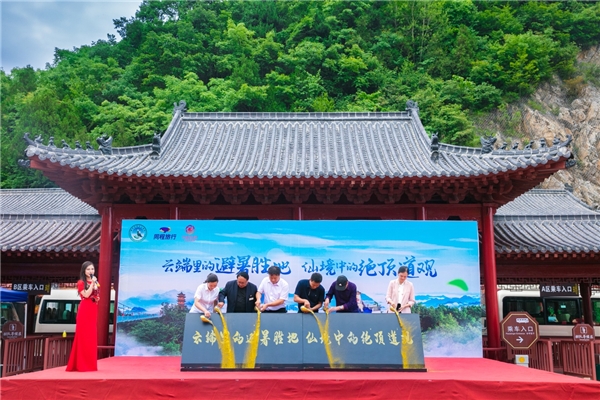 开幕式现场,主持人向在坐的各位介绍了塔云山,拥有500余年历史的塔云山堪称秦岭第一仙山,以险绝、奇特、秀美、壮观、神异而著称。厚重悠久的道教文化和多彩奇特的自然风光,成就了塔云山国家4A级景区的荣耀。