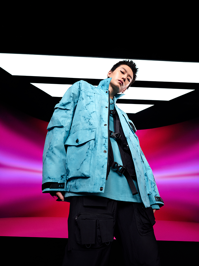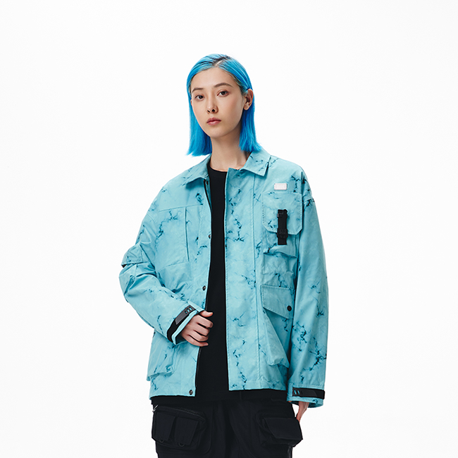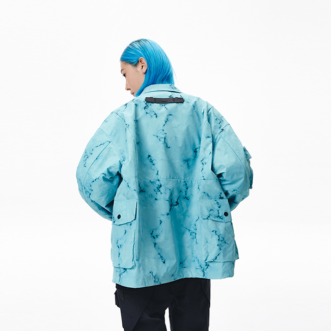 而 LNG 「都市机能」系列廓形夹克则运用了大理石纹路,并以多形态口袋设计满足年轻玩家实穿性能。以此为线上游戏和现实世界中的时尚玩家提供了着装背景和着装灵感。
