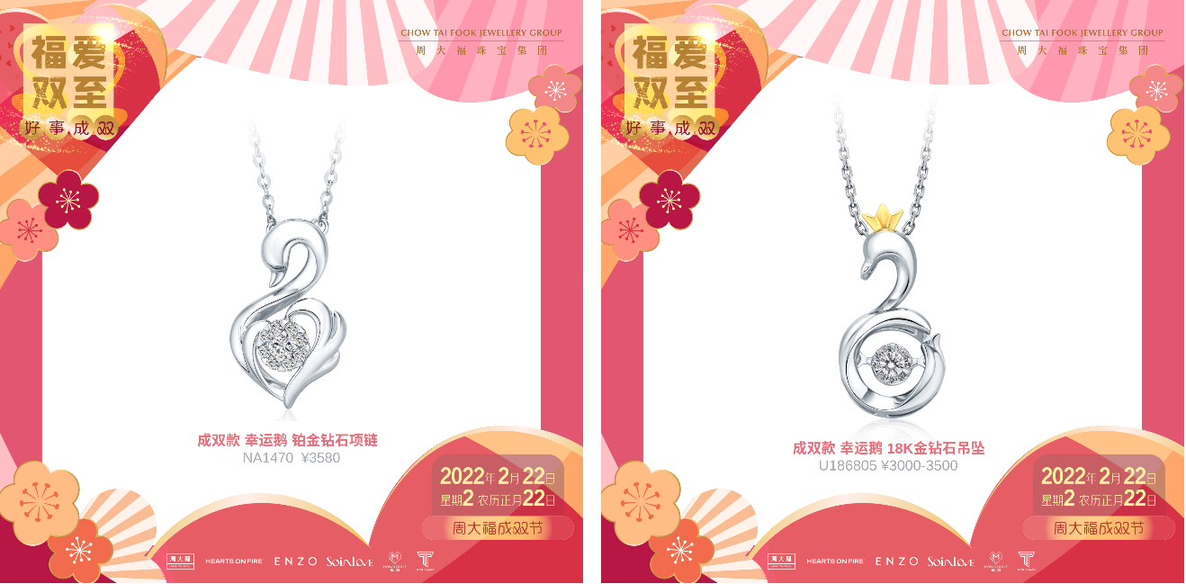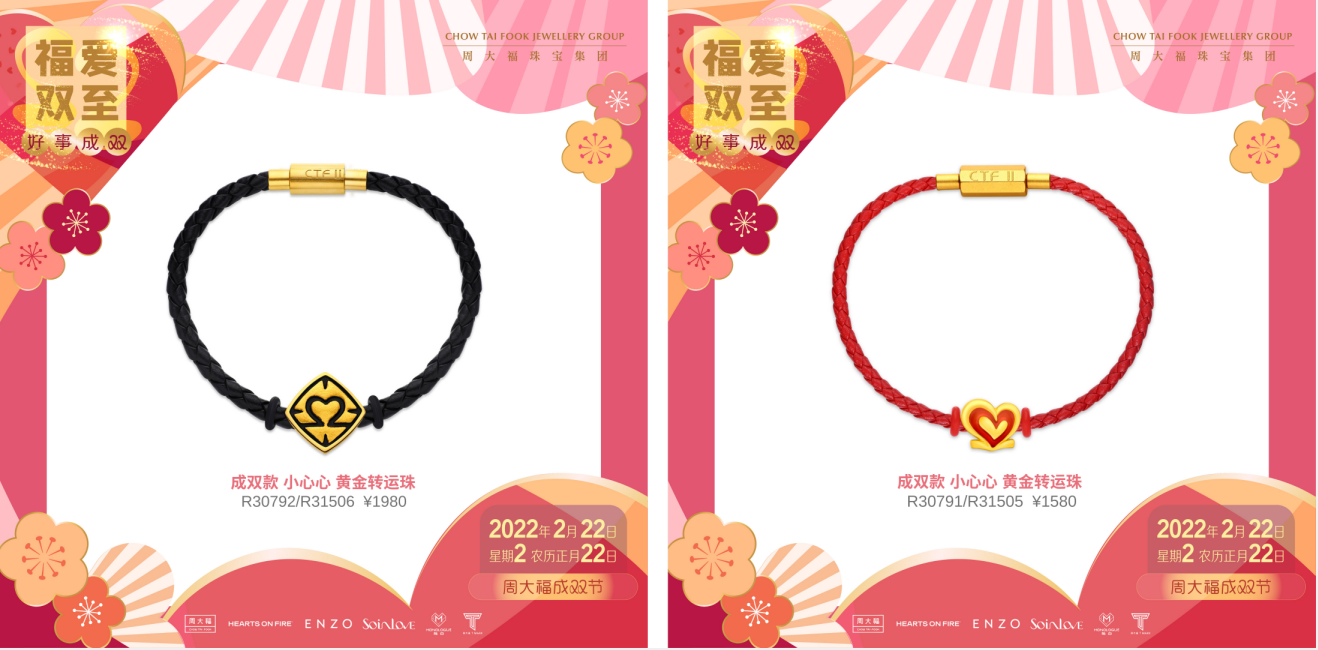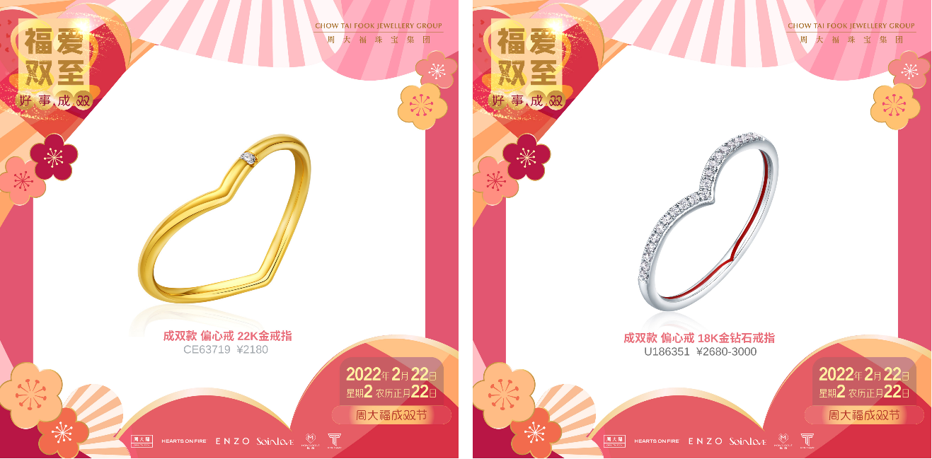2022年2月22日,星期二,农历正月廿二,在这个9个2充满爱的日子里,周大福成双节完美落幕。 在这一天,周大福化身成双使者,为大家带来成双礼、成双券、成双购, 见证了无数的甜蜜瞬间,助力大家在千载难逢的日子里,成就勇敢说爱,让可贵心意都可借此表达。